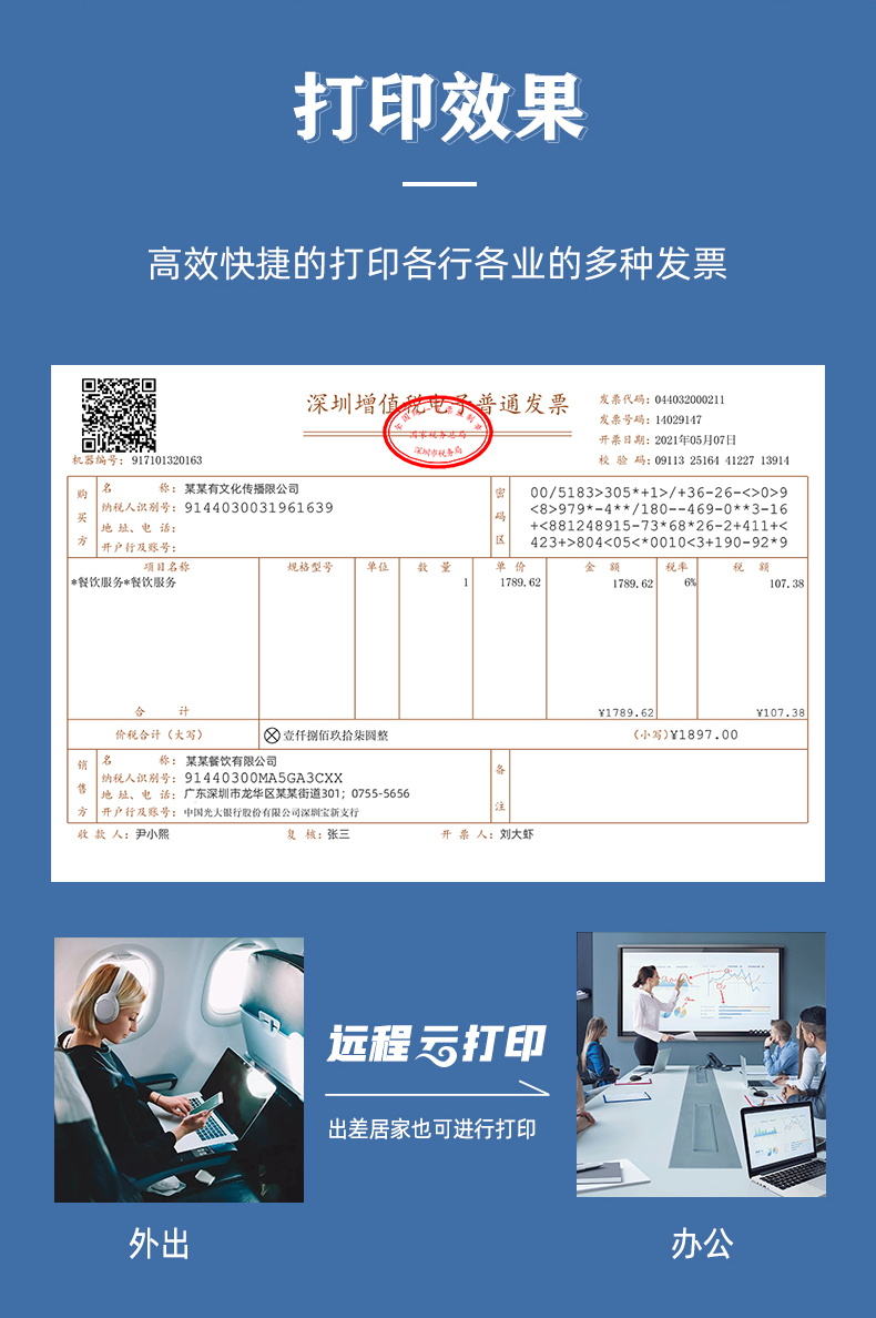 電子發(fā)票自助打印機介紹:美松電子發(fā)票打印機支持云打印,這款6寸發(fā)票打印機,可打印160mm寬的紙卷,電子發(fā)票采用長效熱敏紙保存時間長,用在電子發(fā)票自助打印終端,消費者在電子發(fā)票自助打印終端掃碼填寫發(fā)票信息自動打印紙質(zhì)電子發(fā)票,節(jié)省企業(yè)時間成本,提高工作效率。